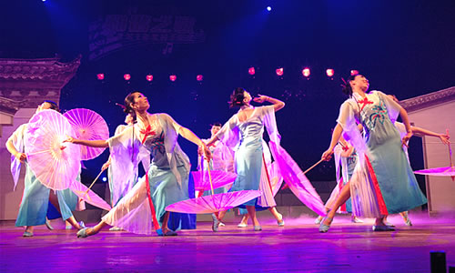 演出行至中段,由齐鲁石化公司文艺沙龙选送的、一化职工邹燕燕参演的《小城雨巷》给观众带来了别样的心境。雨中起落的花折伞,雾霭中的民居小巷,展现了浓浓的南国风情。