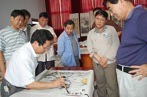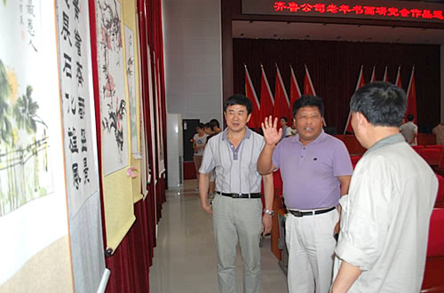 在展出过程中,公司副总经理程嘉理、党委副书记孙伯龙、副总经理王永强、滕文涛等多位领导来现场参观。老年艺术家们当场献艺,挥毫泼墨,为我公司创作20多幅作品,赢得在场干部职工的诸多赞扬和敬佩。